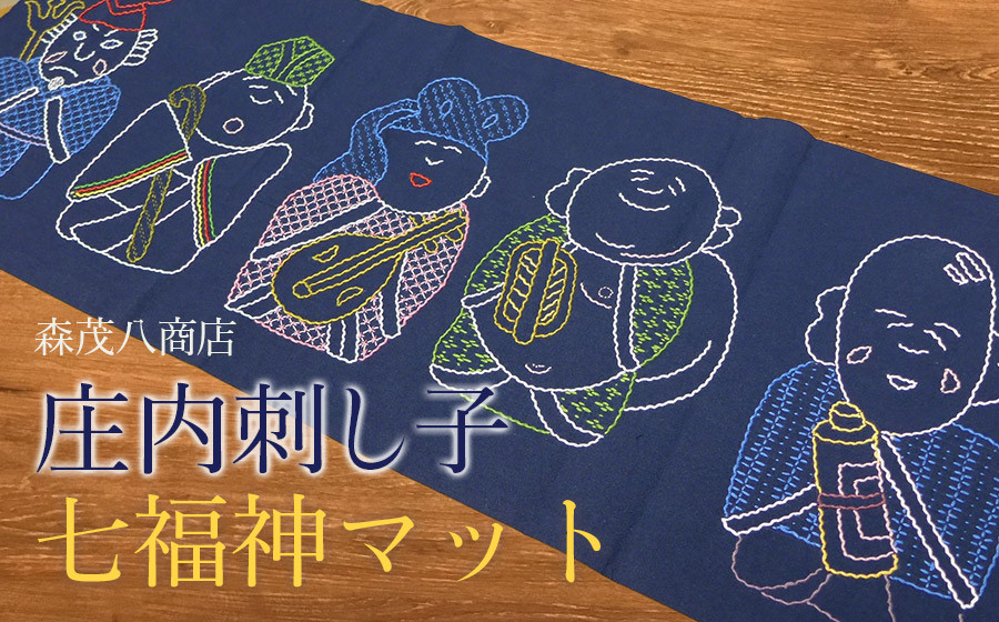 | 容量 | 庄内刺し子 七福神マット 1枚 (たて32cm、よこ112cm) 提供事業者:有限会社 森茂八商店 |