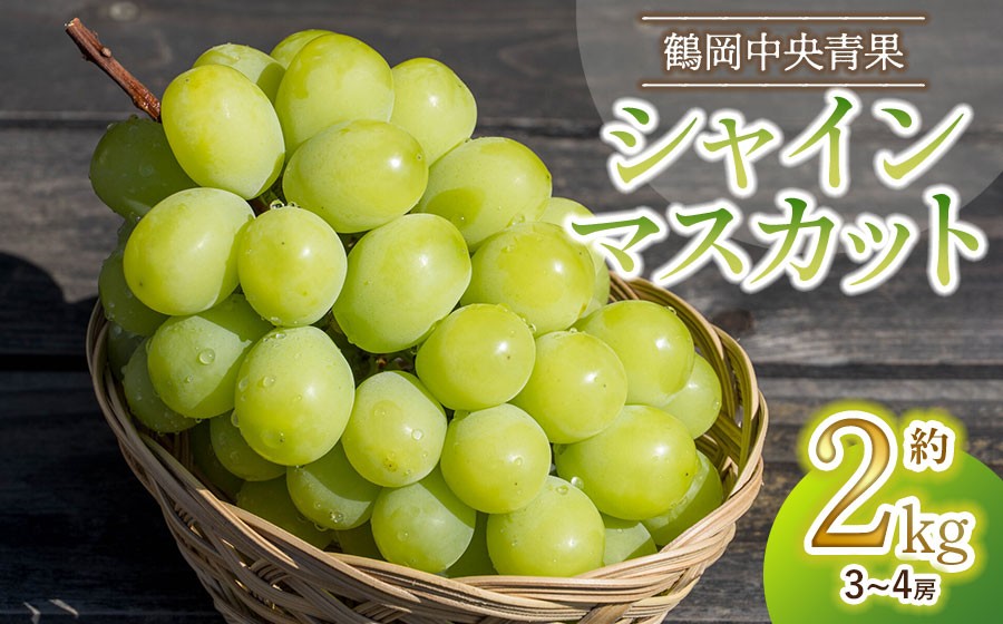 【令和8年産先行予約】 シャインマスカット 2kg(3~4房) 山形県鶴岡市 鶴岡中央青果 | ぶどう ブドウ 葡萄 果物 くだもの フルーツ 2キロ 大粒 種なし 皮ごと 旬 期間限定 2026年産 人気 美味しい お取り寄せ 返礼品