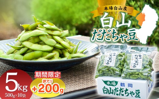 早生白山だだちゃ豆の元祖 長五郎のだだちゃ豆 数量限定【令和8年産先行予約】 白山だだちゃ豆 5kg(500g × 10袋) + 訳あり200g 鶴岡市白山産 長五郎