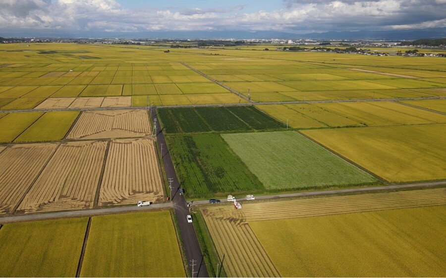日本有数の稲作地帯である庄内平野で、出羽三山・朝日連峰の山々と日本海に囲まれた自然の豊かな地域です。そんな中でも市街地から離れ、田園風景が広がり、春は海岸方面からカモメが、冬は白鳥が飛来する場所で稲作を行っています。