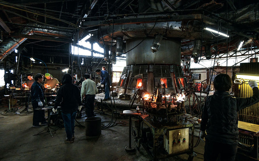 赤々と燃える炉の熱と戦う過酷な環境ですが、この技術を未来へ繋げ発展できるよう応援ください。