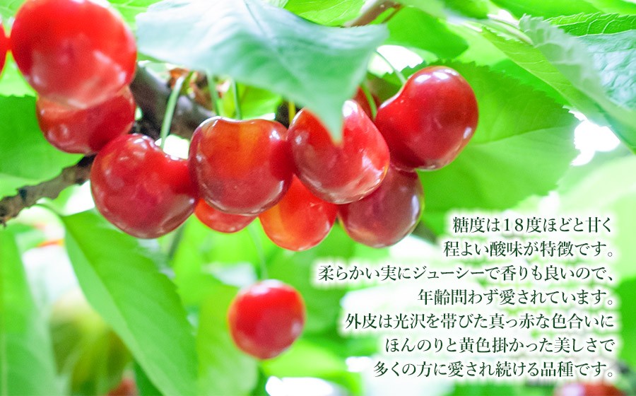 令和8年6月中旬~6月下旬頃発送予定 ※配送日の指定はできませんが、不在期間がある場合は申し込み情報の入力《申し込みに関する備考≫欄へ記載してください。 ※天候状況による生育状況により発送時期が前後することがございます。 ※さくらんぼは温度変化に大変弱いフルーツです。冷蔵便にて発送させて頂きますので到着後はすぐに冷蔵庫にて保管ください。 ※万が一お届けさせて頂いたさくらんぼに傷みがあった場合画像をご用意頂き当日中にご連絡くださるようお願いします。(対応にお時間を頂く場合がございますがご了承頂きますようお願い致します。) ※お客様のご都合によりお受け取りに日数がかかってしまった場合対応できかねる場合がございます。 ※住所の変更があった場合は発送予定期間の3週間前までにお知らせください。それ以降のご連絡ですと発送をお待たせしてしまうことがございます。 |