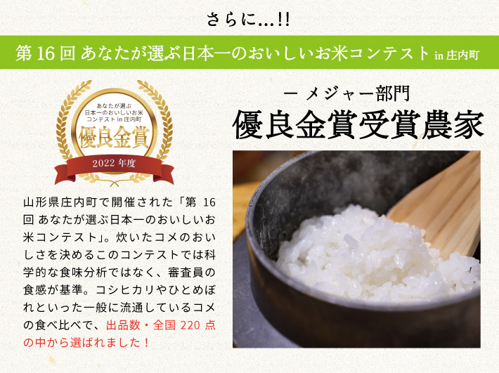 コシヒカリやひとめぼれといった一般に流通しているコメの食べ比べで、出品数・全国220点の中から選ばれました!