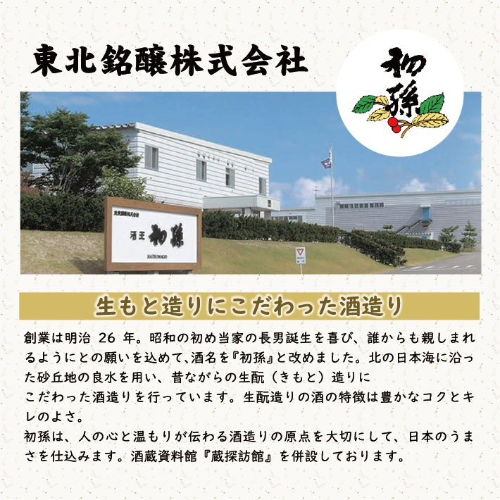 | 容量 | ■初孫 伝承生酛 ■上喜元 猩々 計2本(各720ml×1本) |