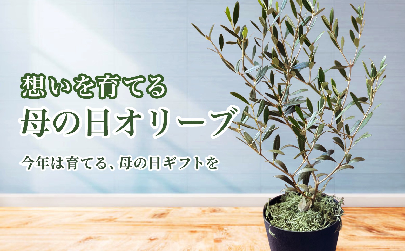 母の日に愛をささやく木、「オリーブの鉢」を母の日限定のラッピングでお届けします。