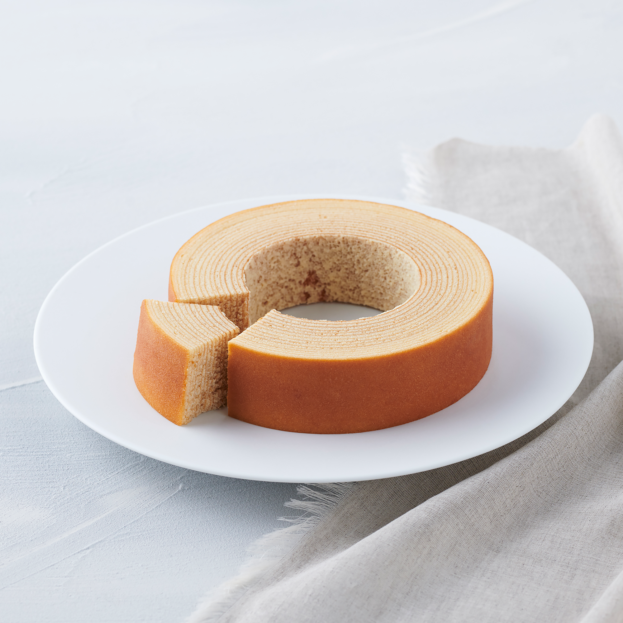厳選された材料が織りなす優しい風味と、お米特有のしっとり・もっちりした食感が特徴のバウムクーヘンです。