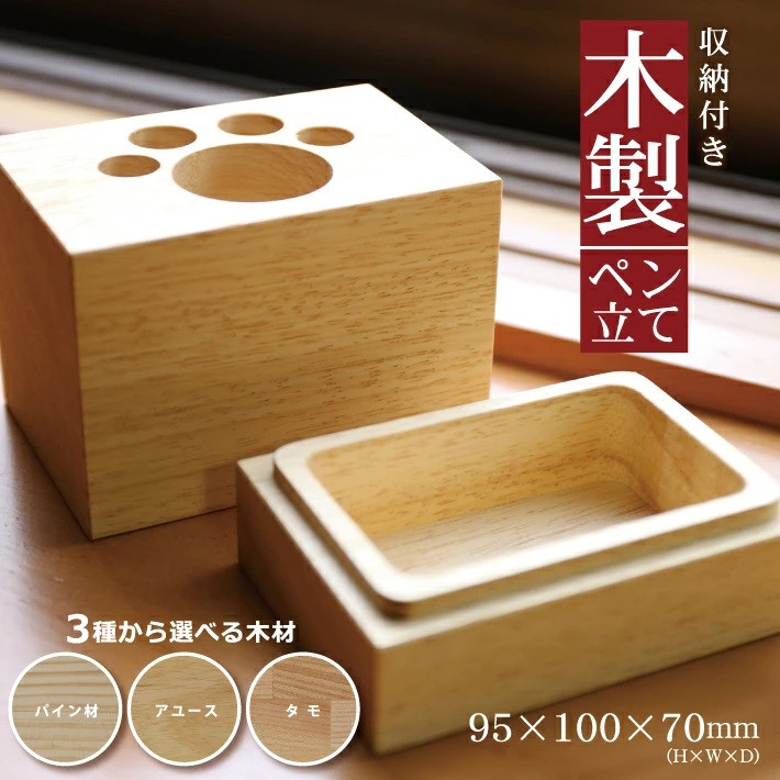 チョイスPayポイントと交換できる品 【木のぬくもり】シンプルで存在感のある手作りペン立て 収納スペース付き 《3種の木材から選べる》収納付き木製ペン立て 肉球タイプ SA1319