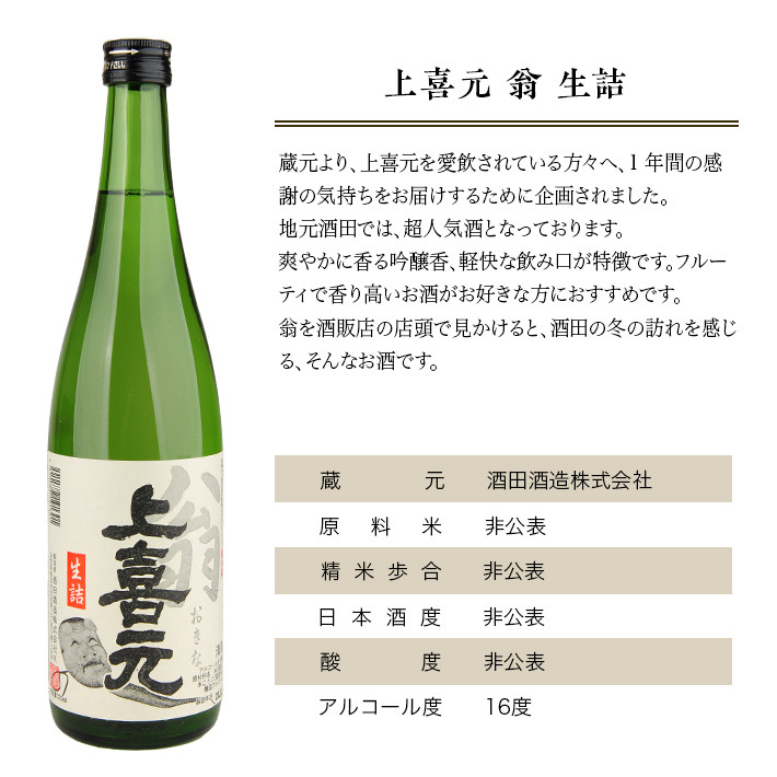 上喜元 翁 生詰 720ml×6本 SE0442