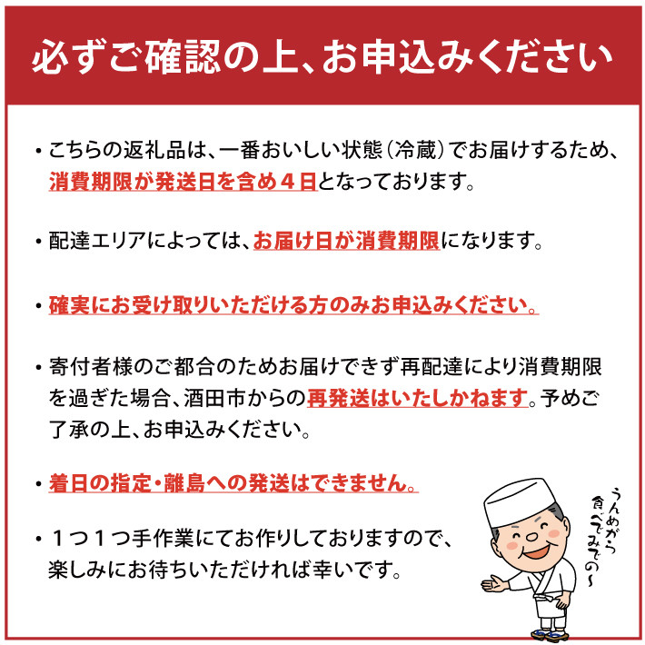 ●寄附者様のご都合のためお届けできず再配達により消費期限を過ぎた場合、酒田市からの再発送はいたしかねます。予めご了承の上、お申込みください。