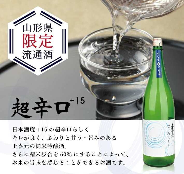 | 容量 | 上喜元 純米吟醸からくち+15 なごみしずく 1800ml×2本 ※着日時の指定・離島への発送はできません。 |