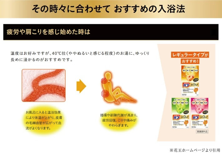 花王酒田工場製造 温浴効果を高めて、疲労・肩こり・腰痛・冷え性に効く!