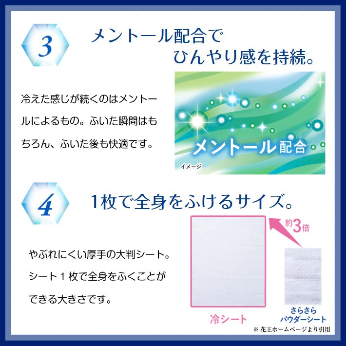 花王酒田工場で製造 メントール配合で肌すっきり爽快!汗ふきシート