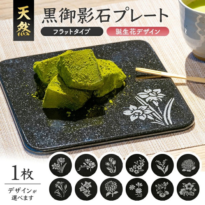 チョイスPayポイントと交換できる品 熟練の職人手作り! 保温・保冷に優れた正方形のお皿です ※選べる誕生花デザイン <12柄から選べる> 天然黒御影石 フラットプレート 【誕生花彫刻】 1枚 SE0268