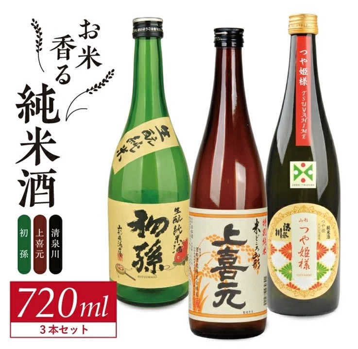| 容量 | 1.初孫 生もと純米酒 2.上喜元 純米酒 3.清泉川 山形つや姫様純米酒 計3本(各720ml×1本) |