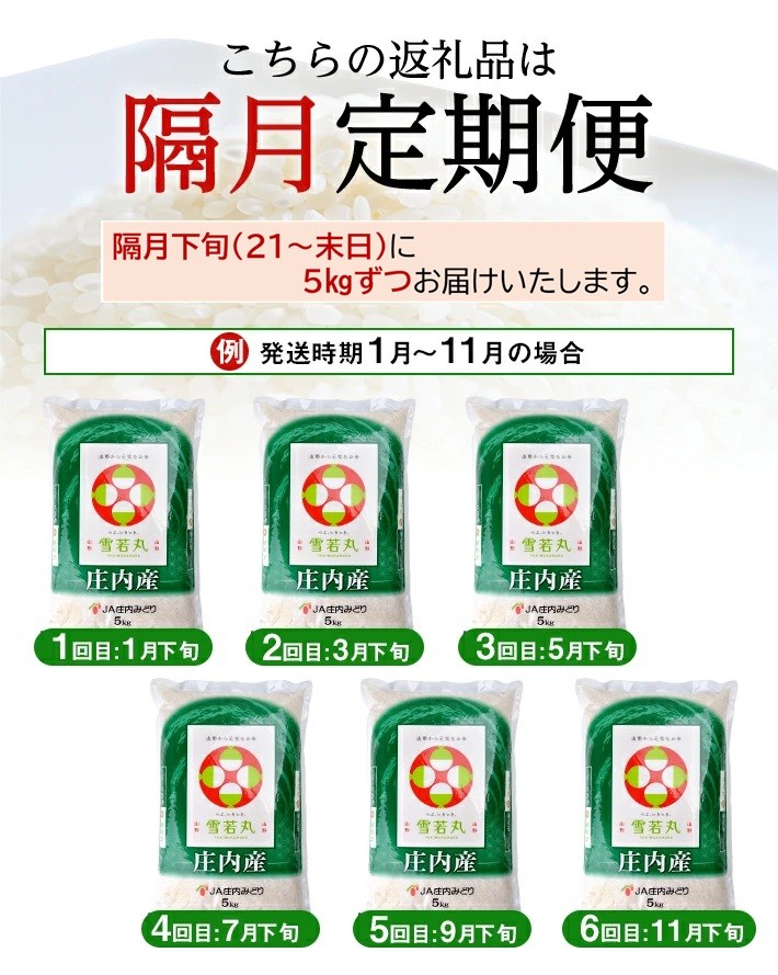 NEW 【隔月6回定期便】[精米]雪若丸 5kg×6回(計30kg) JM SG0139