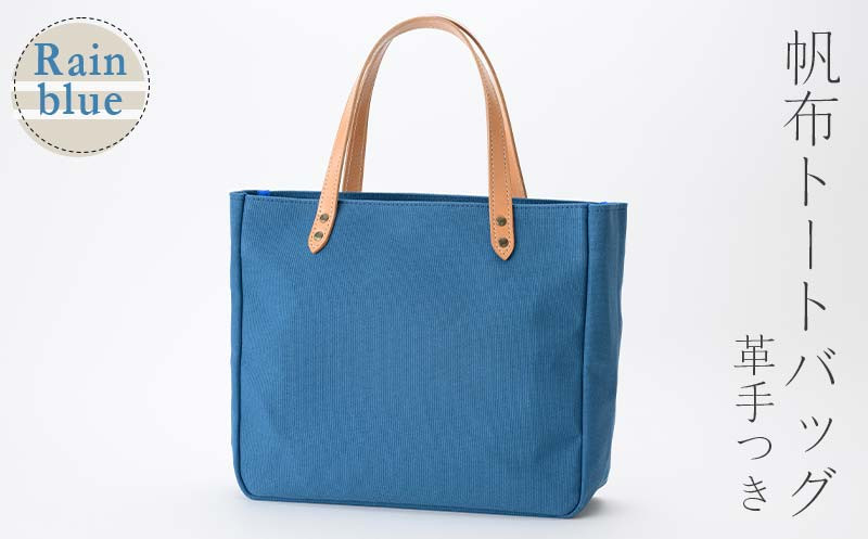帆布 トートバッグ 革手付 レインブルー (8号帆布) かしわや鞄店 F3S-2284