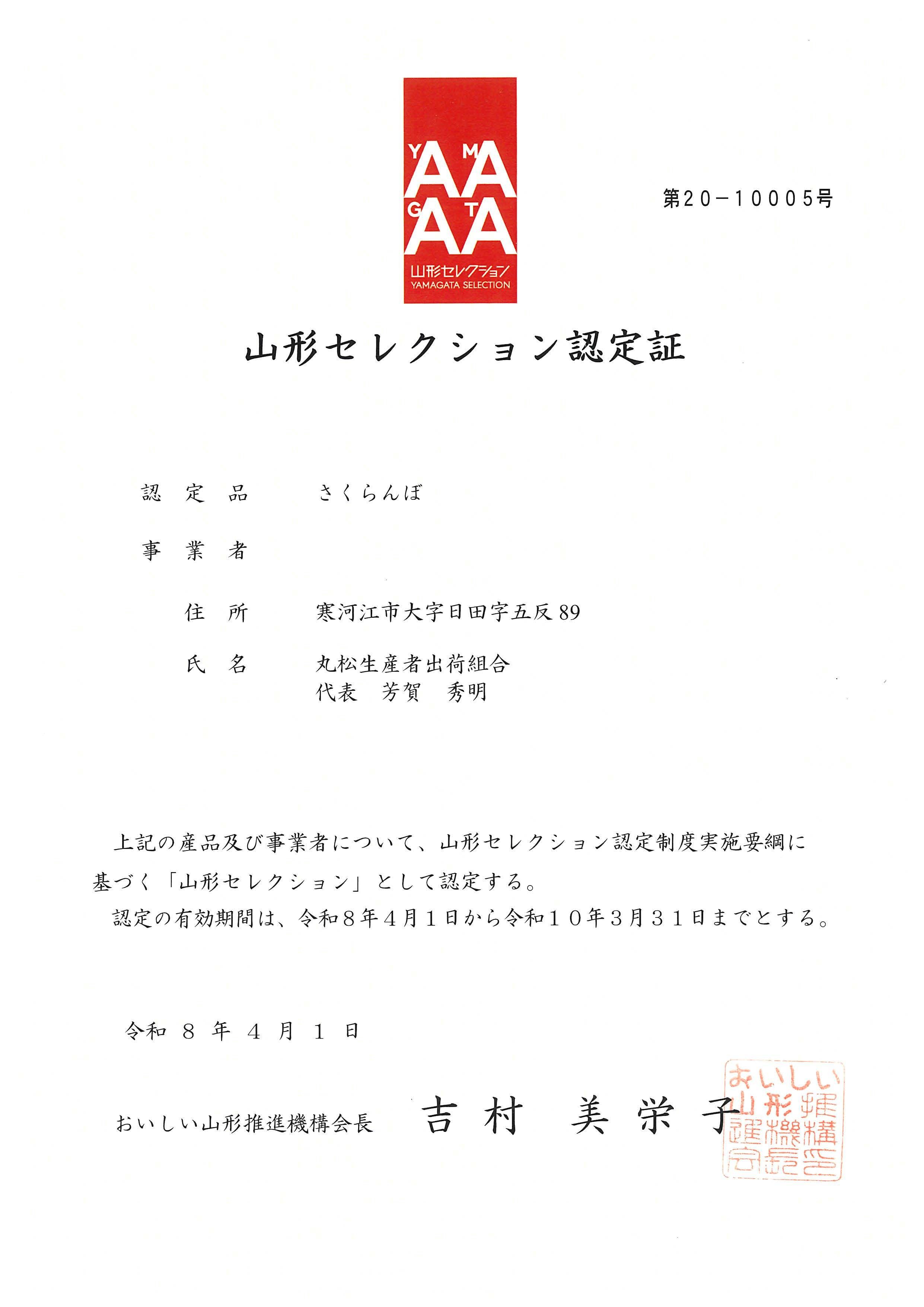 協力事業者:丸松青果(山形県寒河江市日田五反89)