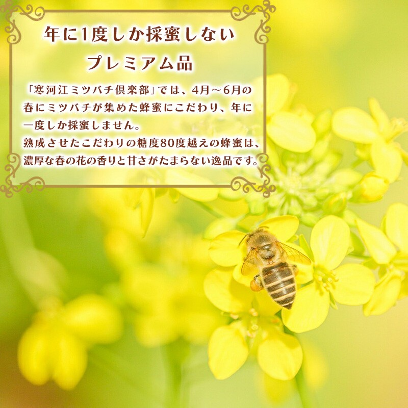 通常よりも巣箱の中で長く熟成させた糖度80度越えの純粋はちみつです。