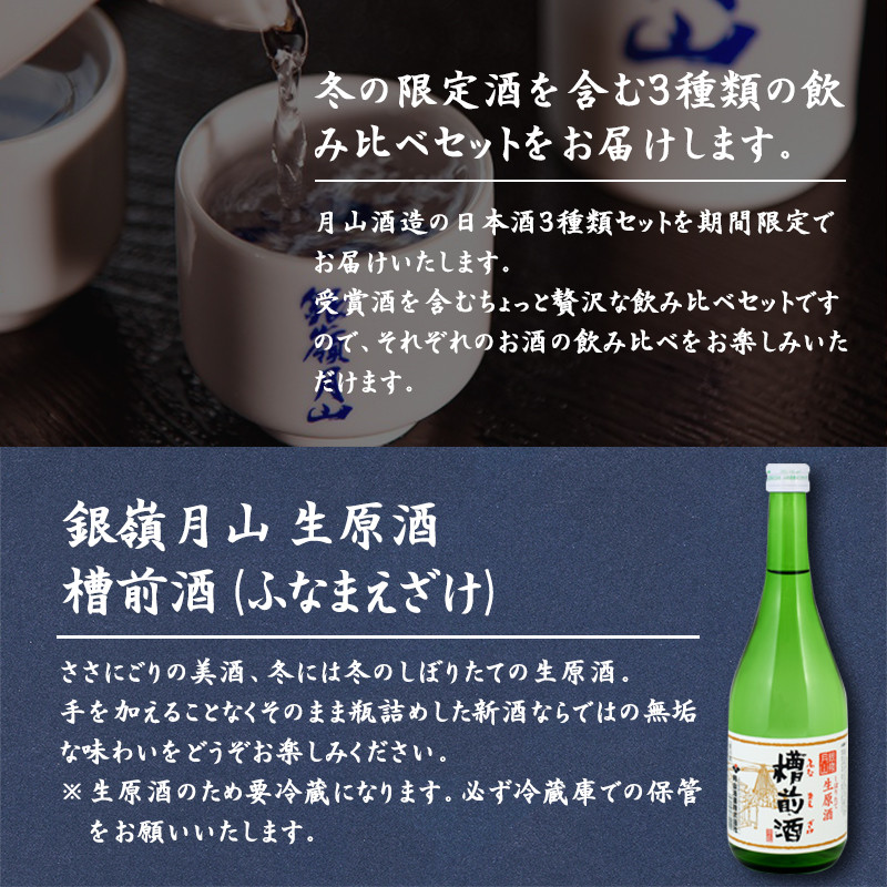 【冬の限定酒を含む銀嶺月山飲み比べセット】 【銀嶺月山】 冬の3種 飲み比べ セット 720ml×3本 月山酒造【2025年12月頃から2026年3月頃に順次発送】/ 日本酒 地酒 お取り寄せ 晩酌 ご当地 特産 土産 受賞酒 季節限定 期間限定 四合瓶 忘年会 新年会 東北 山形 寒河江 018-E-GS016