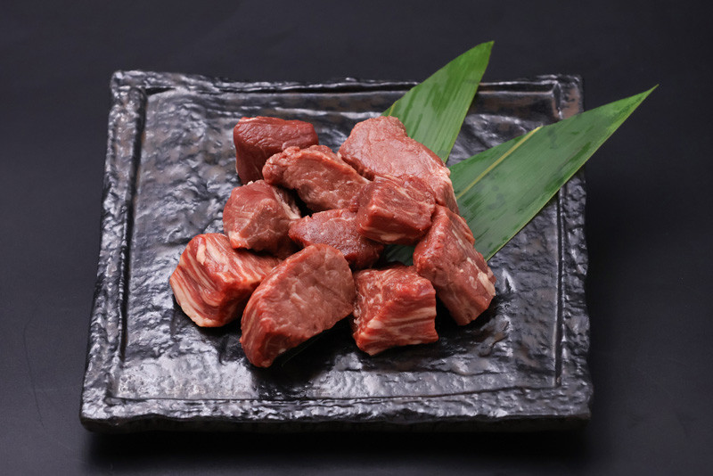 | 容量 | 幸せを運ぶ牛「希少牛 ヒレサイコロステーキ 」 ● 500g(250g×2パック) <原材料名> 牛肉(山形県寒河江市産) |