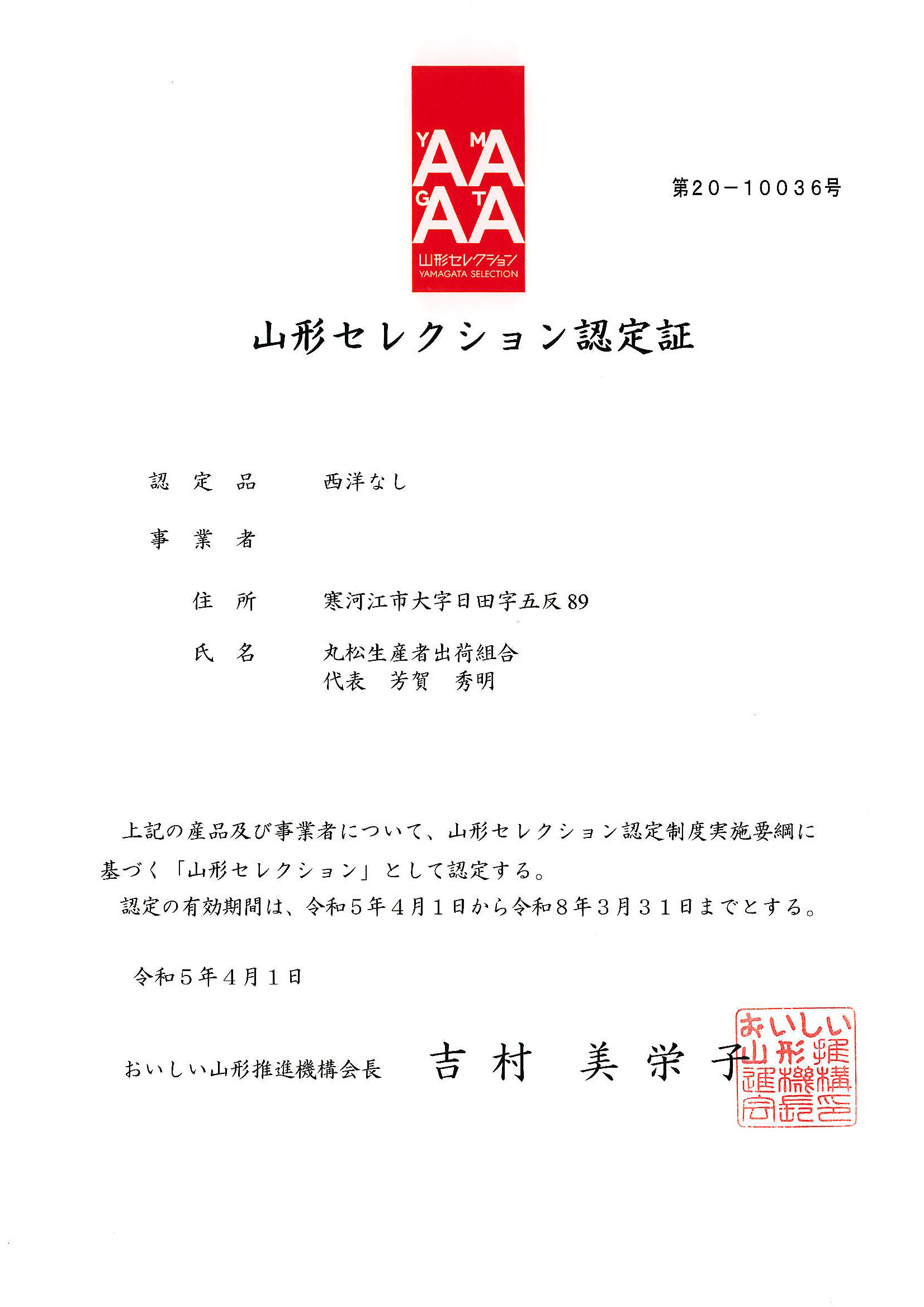 【山形セレクション認定品】