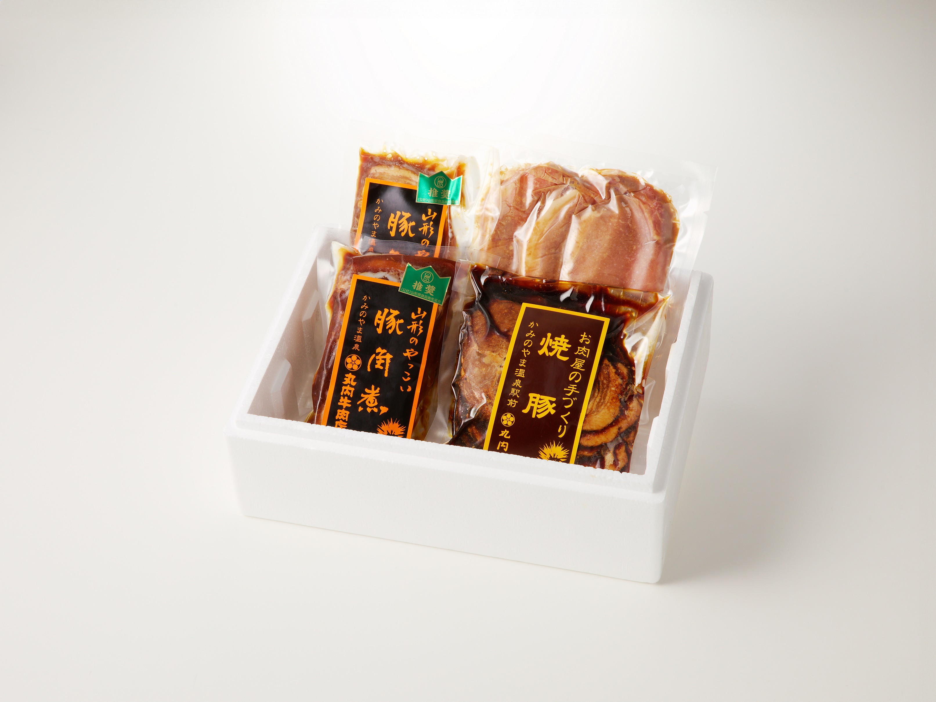 | 容量 | ・やっこい山形の豚角煮(50g×3切れ)2パック ・焼き豚 130g 1パック ・豚の味噌漬(80g×3枚)1パック |