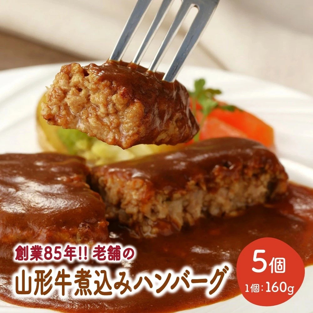 山形が生んだ極上のハンバーグ 特製デミグラスソースとの相性抜群! 創業85年の老舗の山形牛煮込みハンバーグ 160g×5個 0022-2401