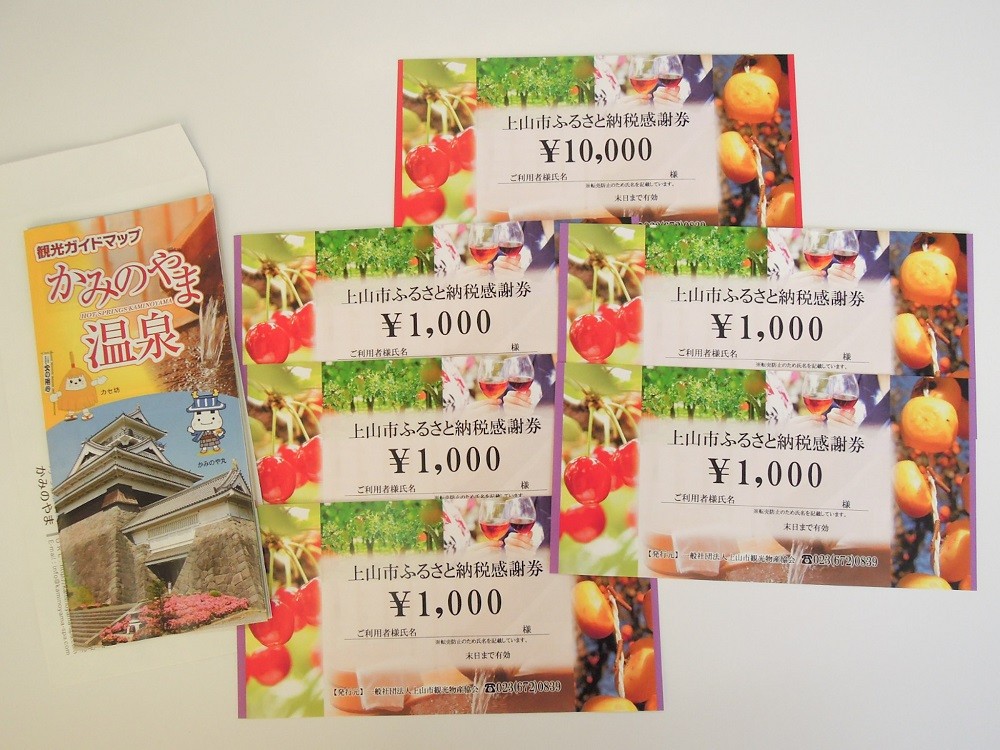 かみのやま温泉の旅館やペンションで使える感謝券 上山市ふるさと納税感謝券15,000円分 0023-2205