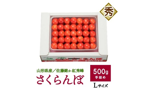 | 容量 | 佐藤錦か紅秀峰 500g 手詰め Lサイズ 秀品 ※品種の指定はできません。 ※天候により出荷時期や規格(数、サイズ、品種等)を変更する場合がございます。 |
