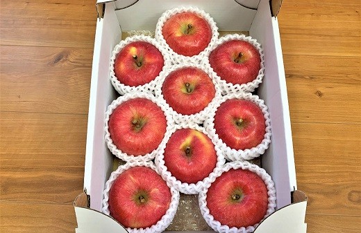 果実はふじりんごよりやや小玉で、食味・香りが高く、全体的に蜜が入ります。