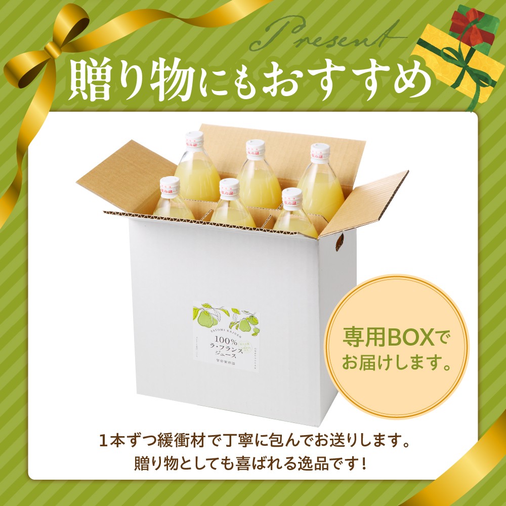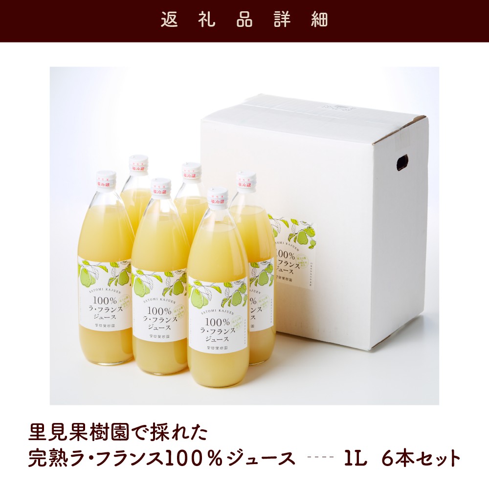 里見果樹園のラ・フランスで絞った100%ジュース 【2026年12月~発送】里見果樹園で採れたラ・フランス100%ジュース 1L 6本セット 0079-2634