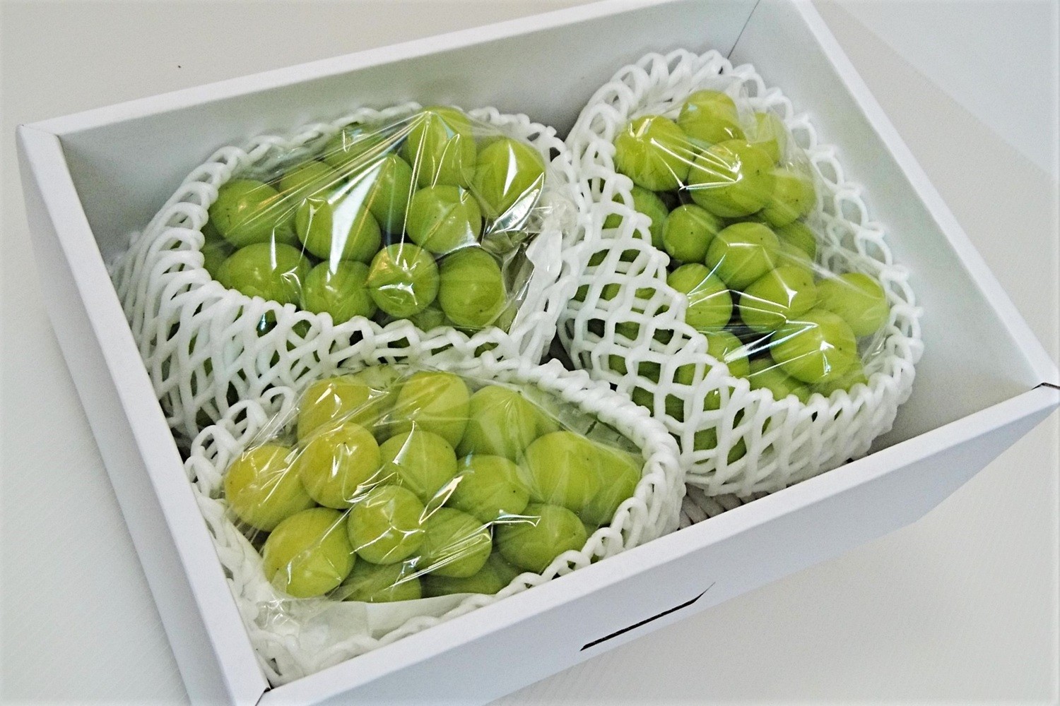 | 容量 | シャインマスカット 3~4房 合計2kg ※房数の指定はできません。 ※品質保持のため、房ごとに袋詰めしてお送りいたします。 ※ぶどうの性質上、糖度の上昇等により房から実が外れる場合がございます。ご了承ください。 ※天候により出荷時期や規格(数、サイズ、品種等)を変更する場合がございます。 |