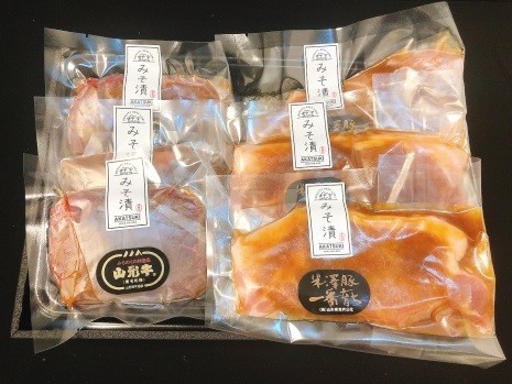 | 容量 | 米沢豚味噌漬け70g×3枚 山形牛味噌漬け60g×3枚 合計390g |