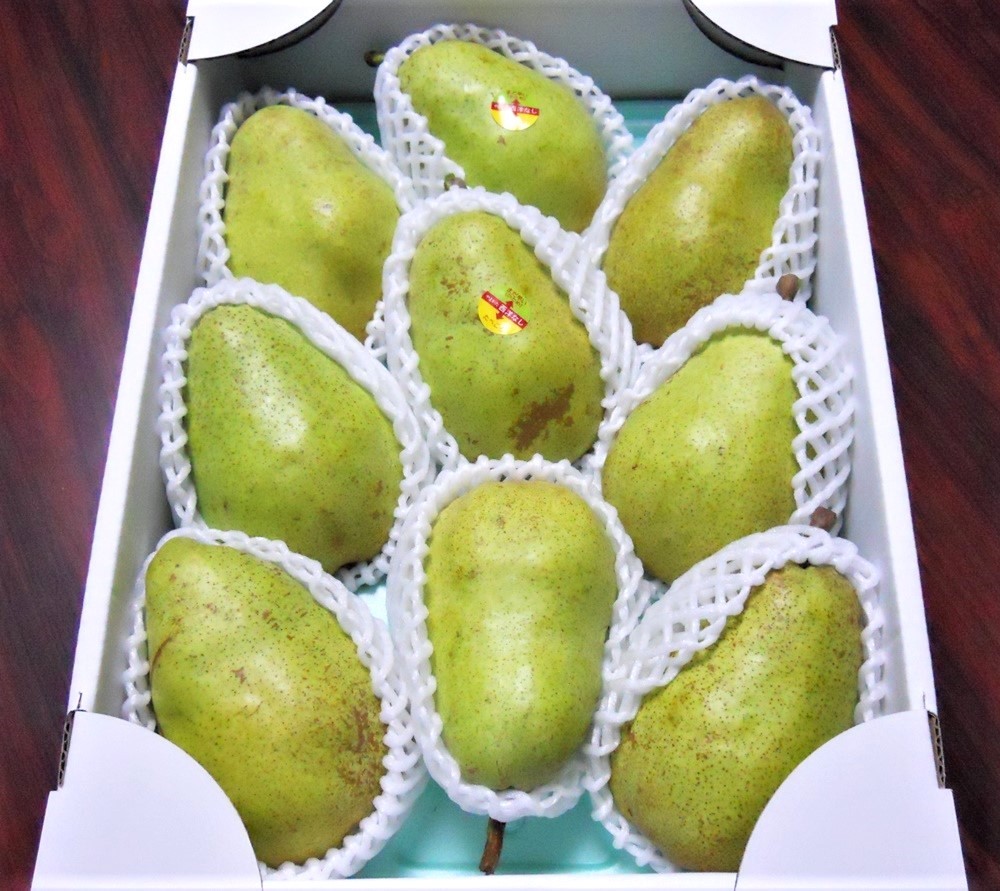 上山市でラフランスをいつも頂いていますが、今回はめずらしい品種をみつけたのでお願いしてみました。ラフランスはいつも外れなしなので、こちらも楽しみです。