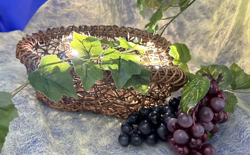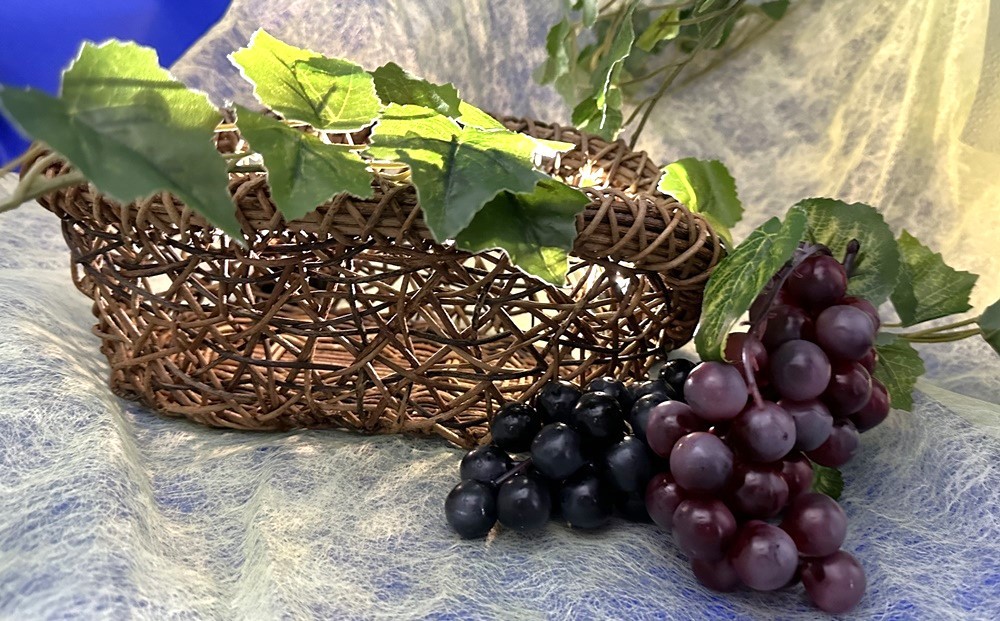 ◆あけびワインバスケット:山形県産の「あけびつる」を使用し、底は「素編み」、胴は「乱れ編み」で編んでいます。
