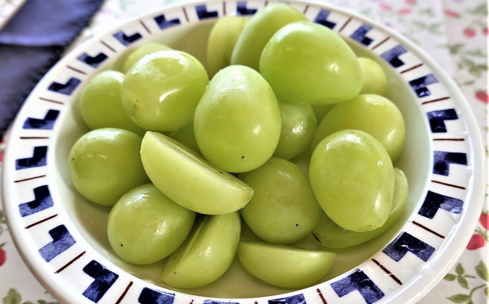 種が無く皮ごと食べられ、濃厚な甘味とプリプリの食感、上品な香りです。