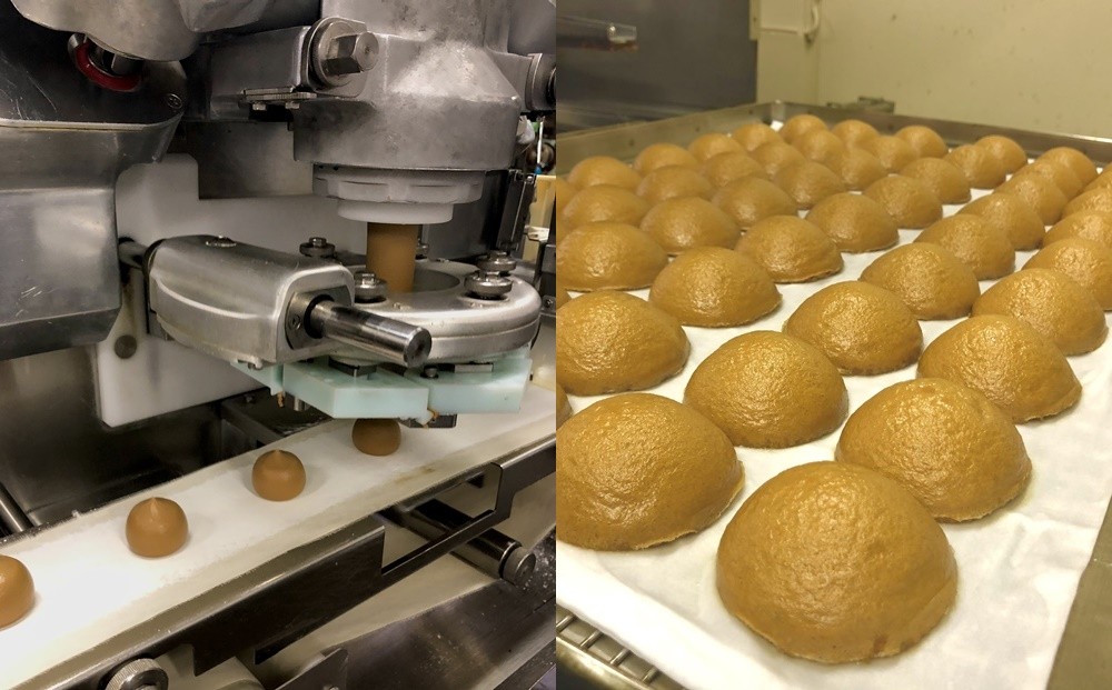 黒糖風味のふっくらとした薄皮で、あっさりとした甘味の自家製いんげん豆の白こし餡を包んでいます。