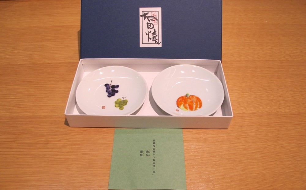 繊細なタッチや色彩にこだわった斎藤茂吉画入り小皿 斎藤茂吉画入り「有田焼小皿」2枚セット(南瓜・葡萄) 0125-2502