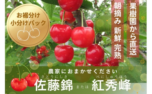 佐藤錦もしくは紅秀峰、どちらかの品種でお届けいたします。