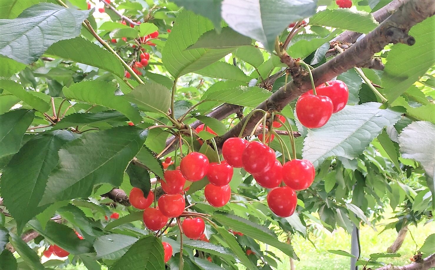代表的な品種である「佐藤錦」のほか、「紅秀峰」や「大将錦」などが栽培されています。