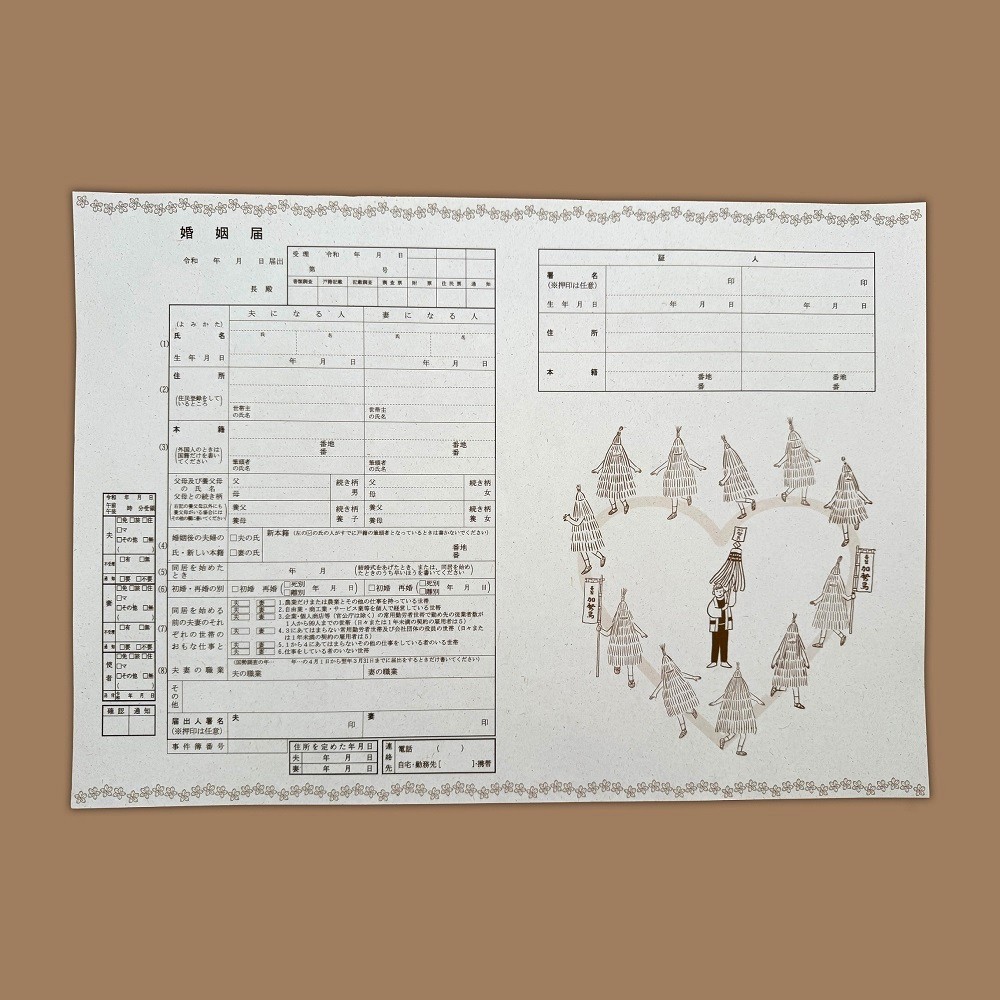 ・婚姻届:加勢鳥が舞い踊る婚姻届。保存用に1枚、提出用に1枚どうぞ。全国の窓口にて提出可能です。