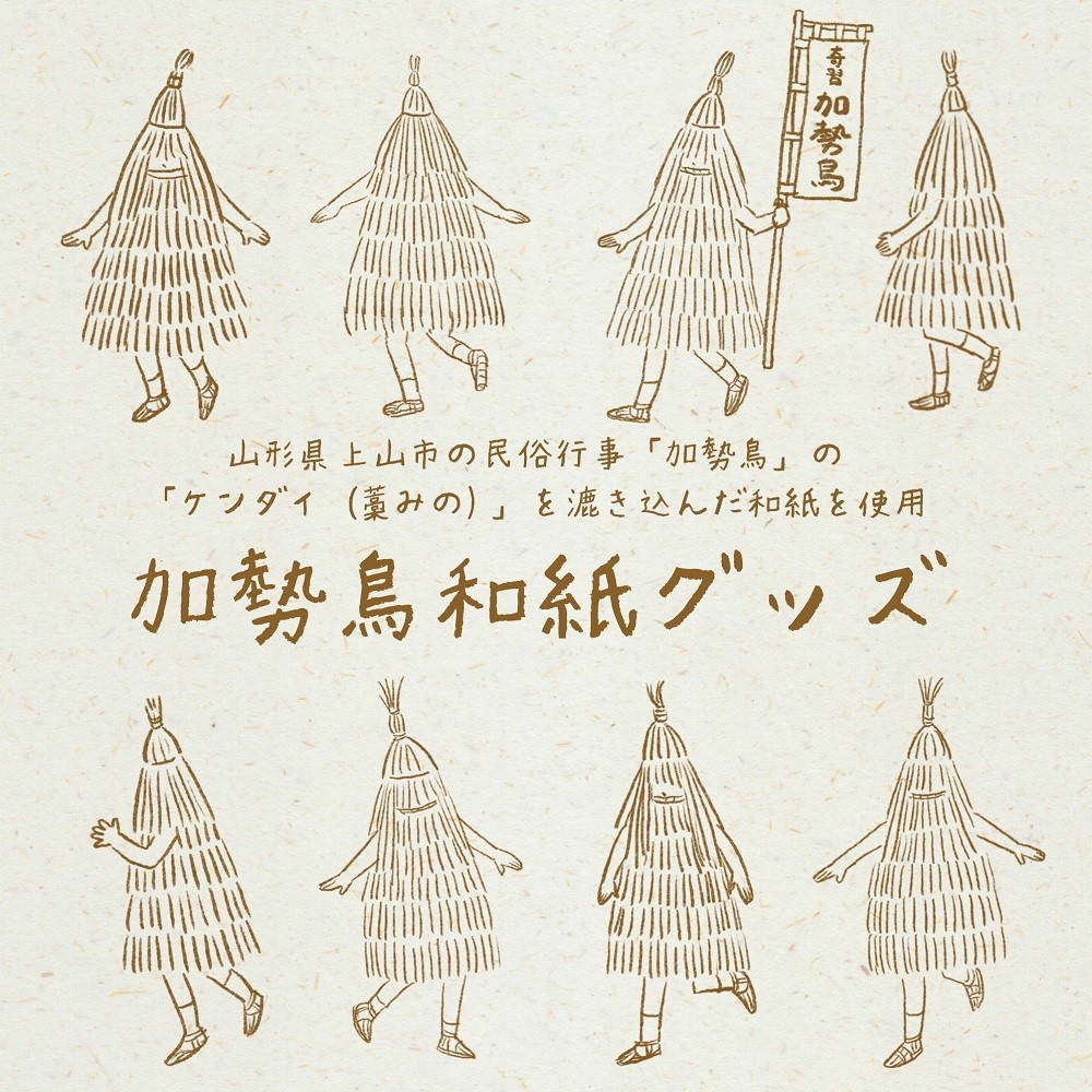 まずは第一弾として、上山市に江戸時代から受け継がれる民俗行事「加勢鳥」のケンダイ(藁みの)を漉き込んだ和紙を開発しました。