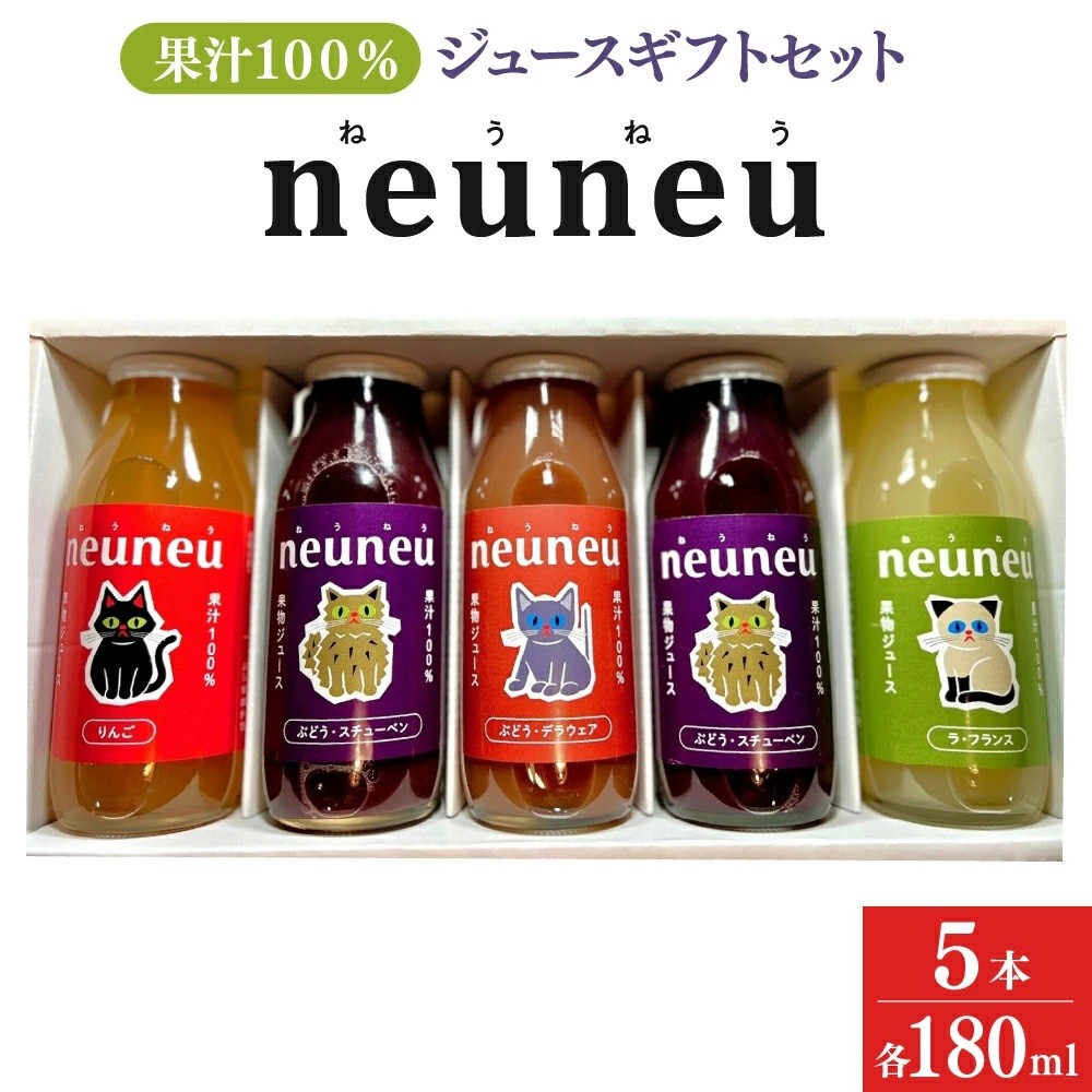 気まぐれネコもこだわりネコも、ネウネウ鳴き出す優しい味わい neuneu(ねうねう)果汁100%ジュースギフトセット 1箱(180ml×5本入り) 0164-2506