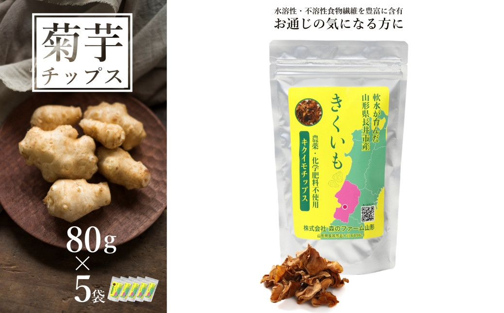 水溶性食物繊維イヌリンを豊富に含むキクイモ食品!お通じが気になる方に! 長井産菊芋(きくいも)乾燥チップス80g×5袋_E115