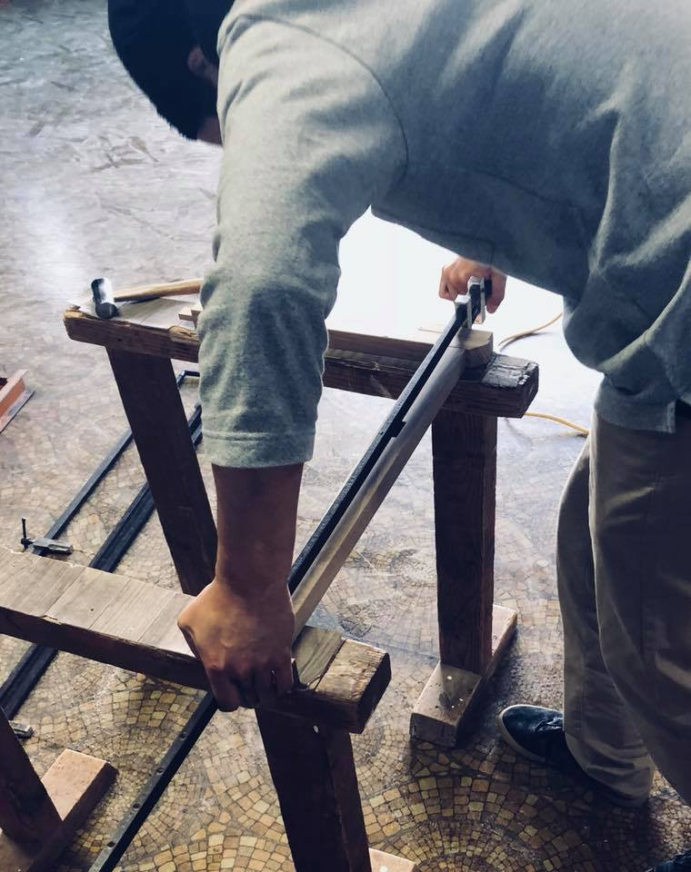 地元、東根市内の自社工房で、家具職人が一つ一つ丁寧に手作りで仕上げる「スツール」。