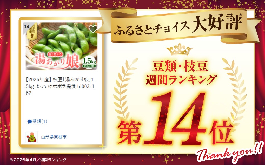【2026年産】 枝豆「湯あがり娘」1.5kg よってけポポラ提供 hi0…