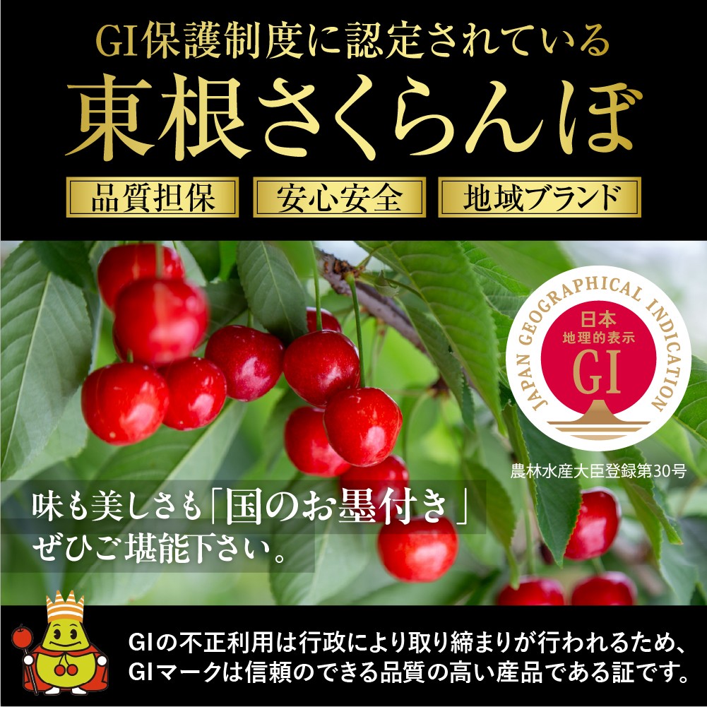 初夏の味覚として人気のさくらんぼの中でも、地理的表示(GI)保護制度認証の「東根さくらんぼ・佐藤錦」をお届けいたします。甘みと酸味のバランスの取れた佐藤錦は不動の人気品種です。