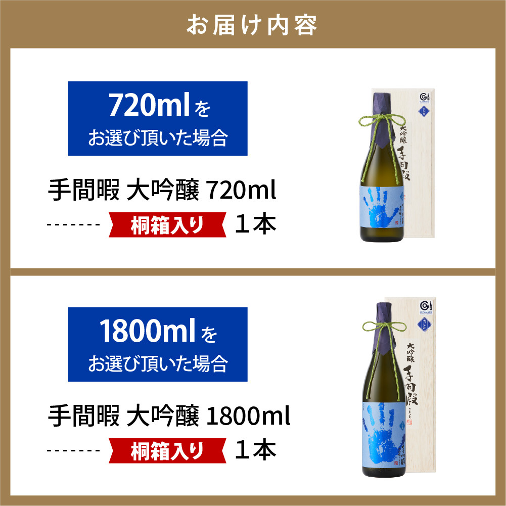 | 容量 | 《選べる容量》 手間暇 大吟醸【雪女神】 【720ml・1800ml】 |