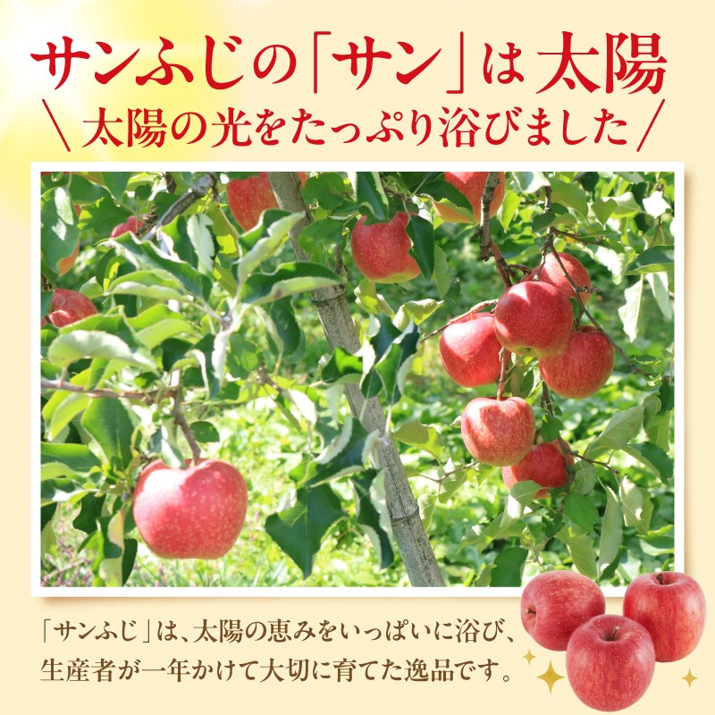 シャリっとした食感と糖度と酸味のバランスが抜群!りんごを代表する品種「サンふじ」は、太陽の恵みをいっぱいに浴び、生産者が一年掛けて大切に育てた逸品です。