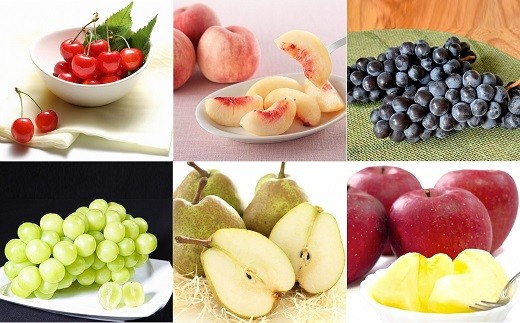 1回目:さくらんぼ2種:令和8年6月上旬~7月中旬 2回目:白桃:令和8年8月初旬~9月末日 3回目:ぶどう:令和8年9月中旬~10月下旬 4回目:シャインマスカット:令和8年9月下旬~11月中旬 5回目:ラ・フランス:令和8年11月初旬~12月中旬 6回目:ふじりんご:令和8年11月中旬~令和9年1月中旬 ※果実の生育状況により発送期間が前後する場合がございます。 ※5,6回目は常温発送。他はすべて冷蔵便でお送りします。 |